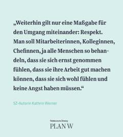 Begegnet einander mit Respekt! Kathrin Werner meint sogar, darin einen ethischen Imperativ entdeckt zu haben: "Weiterhin gilt nur eine Maßgabe für den Umgang miteinander: Respekt."